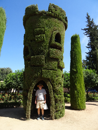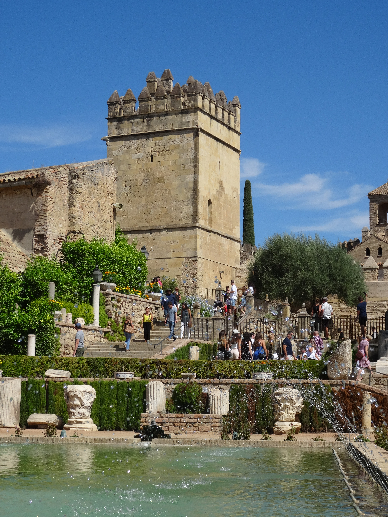 Our Street in Cordoba Alcazaba Water Gardens Topiary Tower Hop on Bus, narrow Street Iconic red and white arches Inside the Mosqu Cleaning lady Roman Bridge with Mosque Socks for Sandals?? Sorry, couldn’t resist Siesta para dos Idylic Restaurant