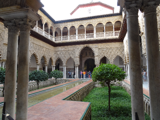 We have tickets for the Alcazar tomorrow, but thought it prudent to scout out the route beforehand. In the Jardines de Murillo brilliant green Monk Parrots clustered in the palm trees – screeching noisily as they swooped from one tree to next. They make a huge racket when flocks of them roost for the night. The neighbouring apartment dwellers are less than enamoured. https://mappingspain.com/the-exotic-green-parrots-of-spain/