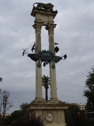 Aha … there, in the middle of the gardens, is the column commemorating Christopher Columbus (Cristóbal Colón)