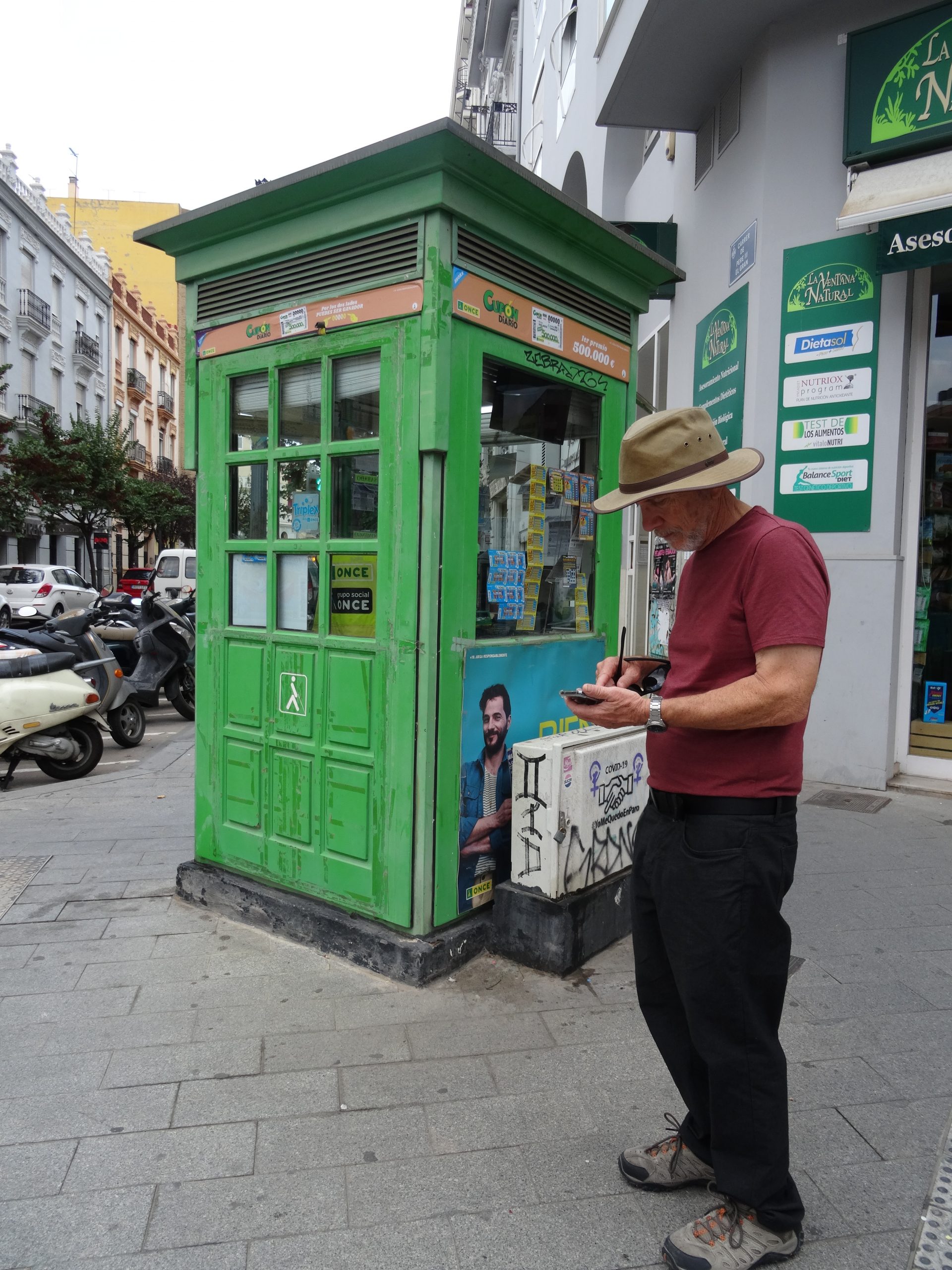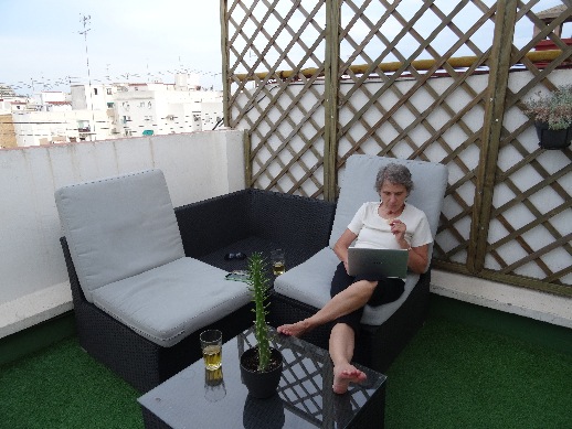 Found the building okay . . . nice residential/local business area. Pushed button #5 as instructed . . . no-one there. Alternate button #17 . . . same thing – no-one home. Hmm. Phoned Maria who, although living in the same building, was actually an hour away and not expecting us until later! “But I said we’d be there mid afternoon!” exclaimed Glen. There was a convenient shady cafe on the corner, so we propped up our cases and sat sipping tea . . . Maria was along shortly, and the misunderstanding of time was revealed. A combination of Google mis-translate and our bad Spanish, but Media Tarde (mid afternoon to us) apparently means after six pm in Spain!