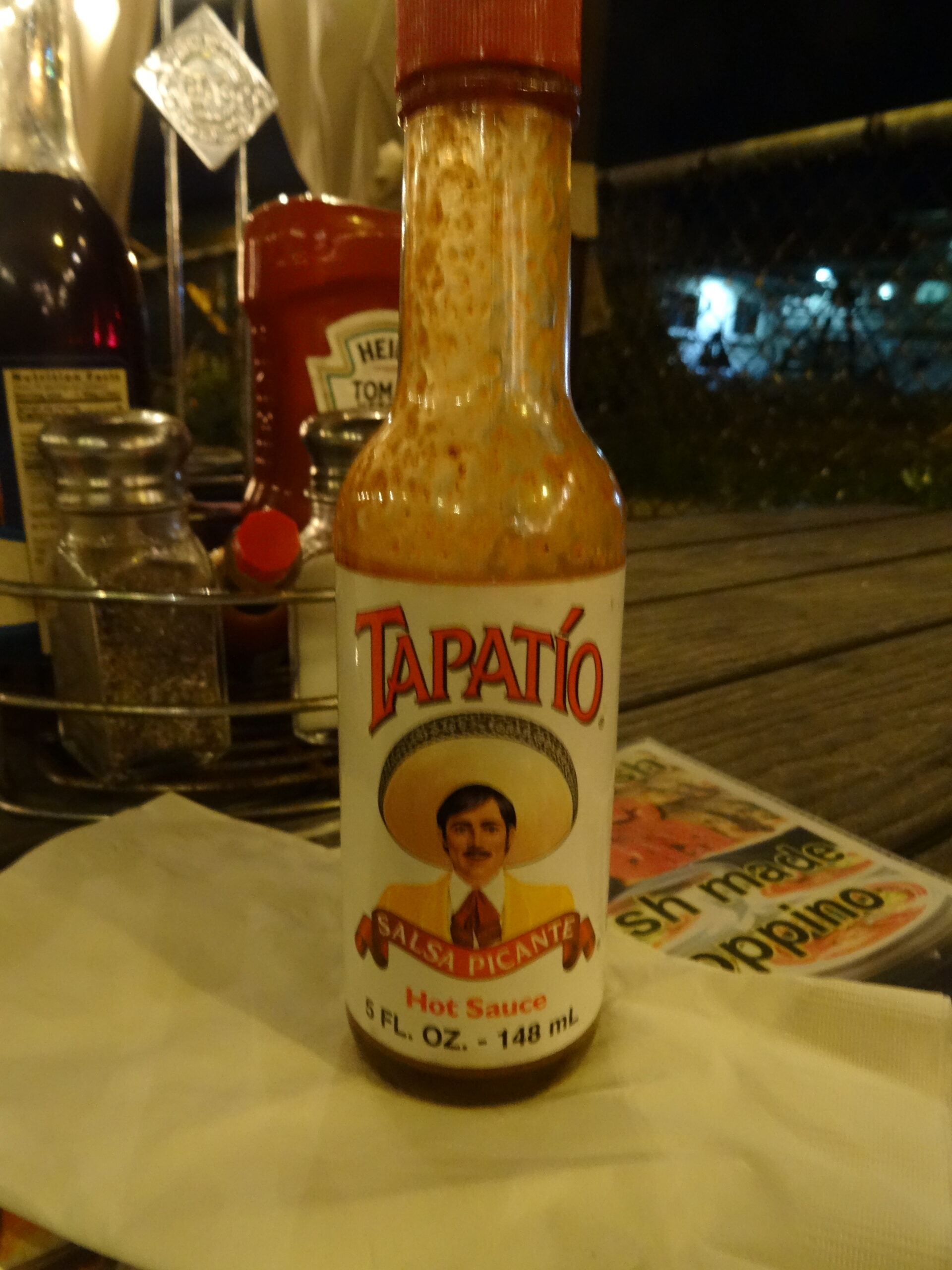 Gila Bend has startlingly green fields . . . a nice change . . . and apparently is home to the 2nd largest natural gas plant in the country, plus a major producer of solar power. What it doesn’t have . . . is a grocery store. Thankfully we had stocked up in Parker, just needed a couple of items. Google only offered up five dollar stores, and a Mercado de Amigos. (the dollar stores sell milk, eggs and canned goods, but no meat). We drove along Main Street to get gas – no Mercado visible. Drove back down Main Street . . . nothing. But once more, Miss Google was insistent, “turn right here“. But this is ‘Don Jose’s Burritos restaurant’!! We went in to ask . . . and lo and behold this was the Market! I guess one has to live here to know where it is! Neat place though. Excellent meat counter — beautiful yellow skinned chicken thighs and legs . . . plump, pink pork chops, some kind of marinated chicken floating in a yellow liquid (?) . . . two kinds of ground up Chorizo (probably like the stuff in Mexico and not at all spicy, but we have spices!) . . . fresh prawn tails, and some delicious-looking fresh salsa too.