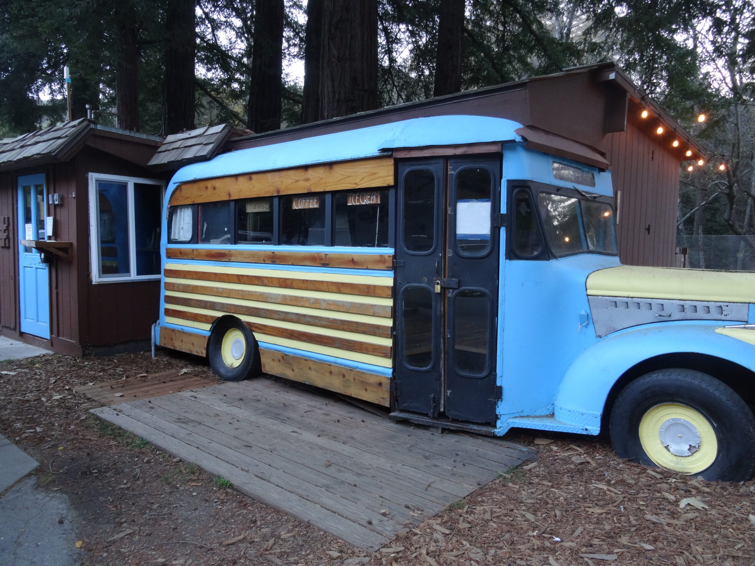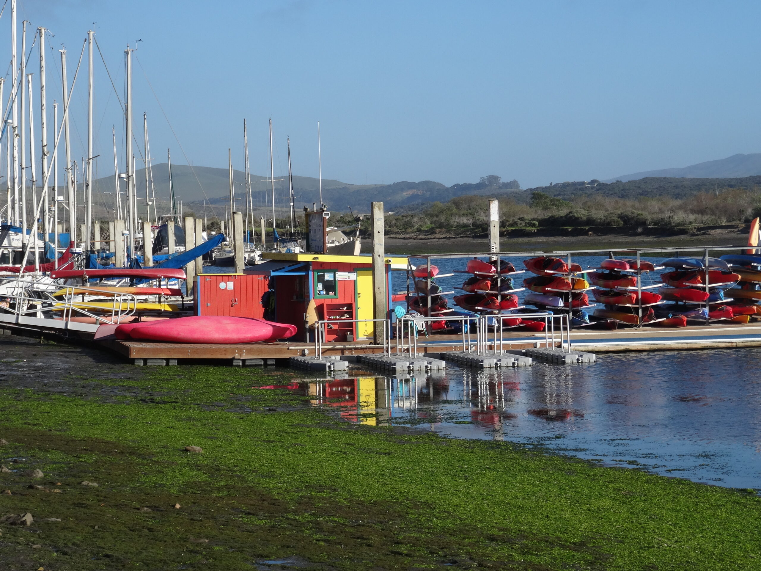 Morro Bay – the campsite appears to be a continuation of the golf course, not helped by the fact we missed the camp turn off the first time! Massive Morro Rock dominates the bay, rather like a miniature Rio de Janeiro. The estuary was abuzz with wildfowl . . . herons and egrets standing like statues, eagle-eyed . . . Buffle-heads bobbing like toy ducks . . . a merganser or two . . . and flights of cormorants and pelicans . . . but the sound was amazing . . a symphony of calls. There were kayaks to be rented . . . and for the budget-minded who still wanted the convenience of a … well, ‘public convenience’ . . . there was this lovely colourful little model on its very own trailer.